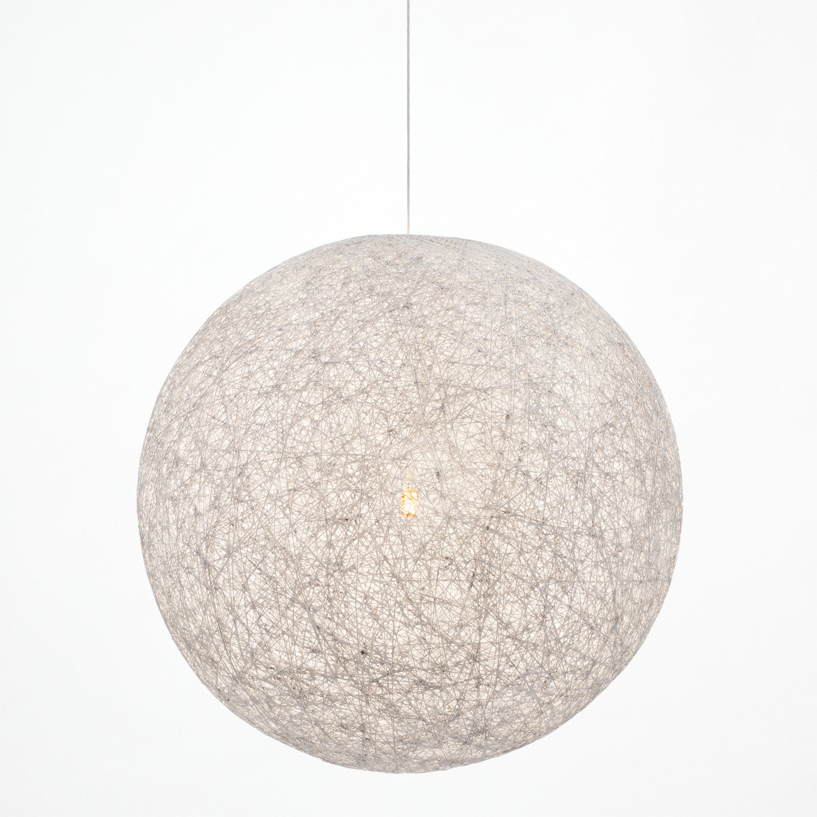 麻紐を樹脂でコーティングし月のような丸いフォルムに仕上げ、凛としたスタイルと温かみを演出した 「Mallee-pendant light」 。